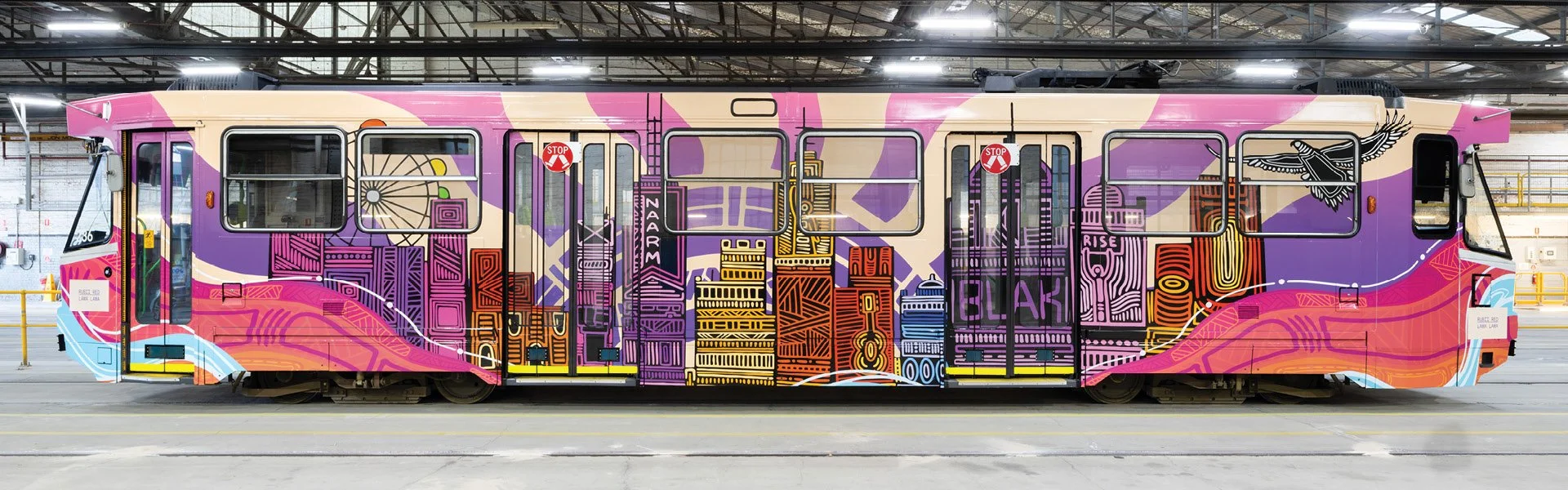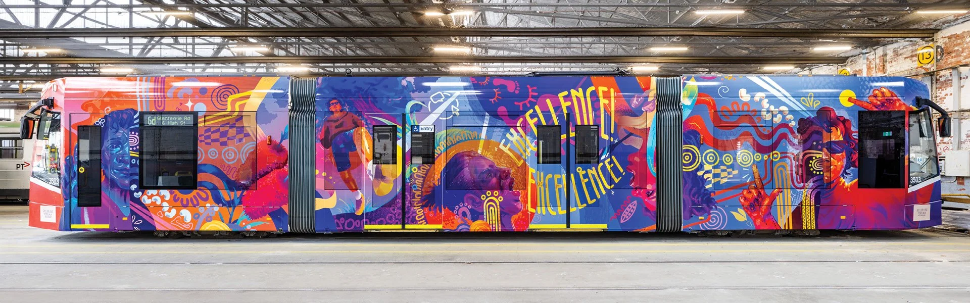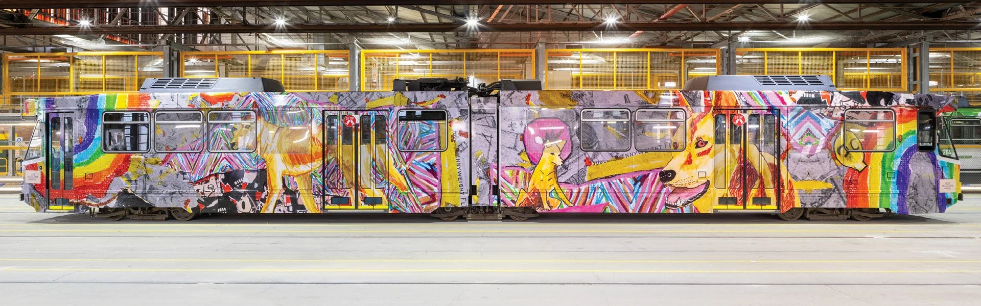 Previously called Transporting Arts, Melbourne’s Art Trams first came to life as hand-painted trams from 1978 to 1993. After a two-decades-long hiatus, the project was reinvigorated in 2013 as Melbourne Art Trams. Since then, we’ve partnered with the Department of Transport and Planning, Creative Victoria and RISING (previously Melbourne Festival) to continue the Art Trams legacy.