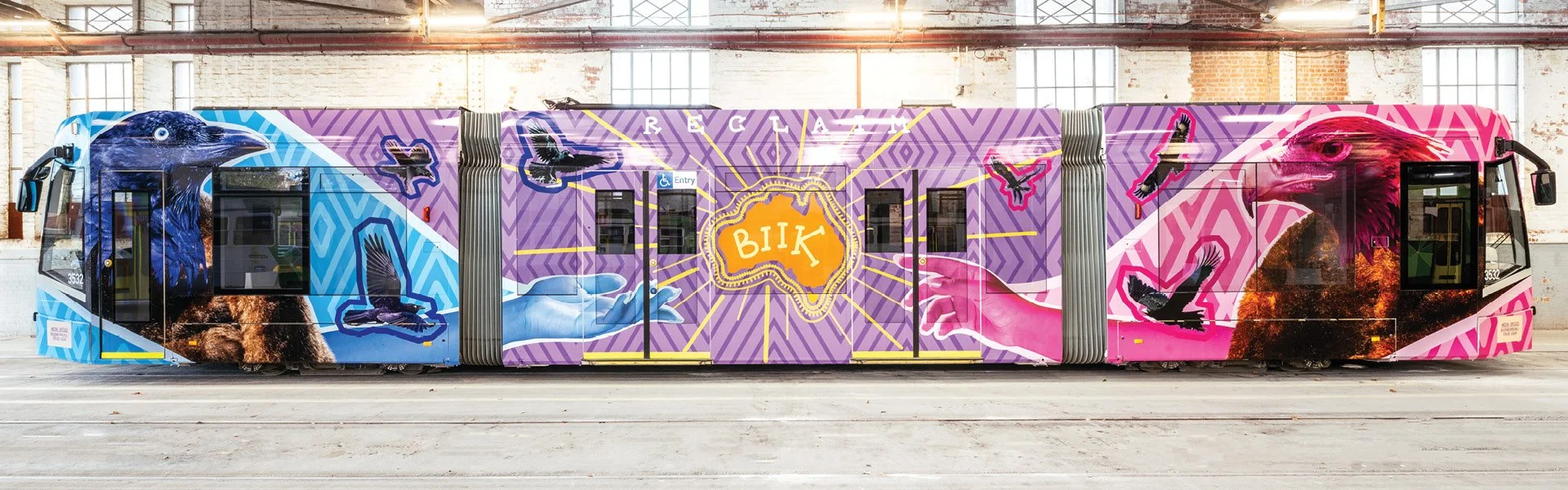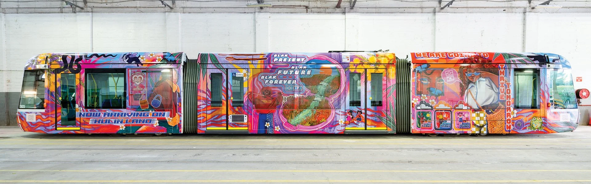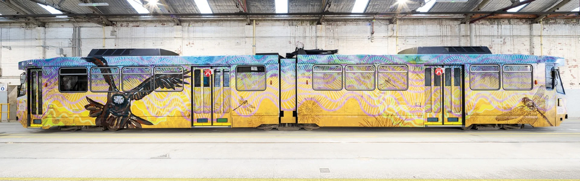 Previously called Transporting Arts, Melbourne’s Art Trams first came to life as hand-painted trams from 1978 to 1993. After a two-decades-long hiatus, the project was reinvigorated in 2013 as Melbourne Art Trams. Since then, we’ve partnered with the Department of Transport and Planning, Creative Victoria and RISING (previously Melbourne Festival) to continue the Art Trams legacy.